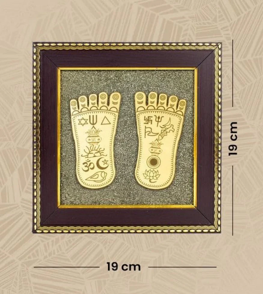 Perfect for homes, offices, shops, and temples, the Laxmi Charan Wall Frame adds both spiritual significance and aesthetic elegance to any space.