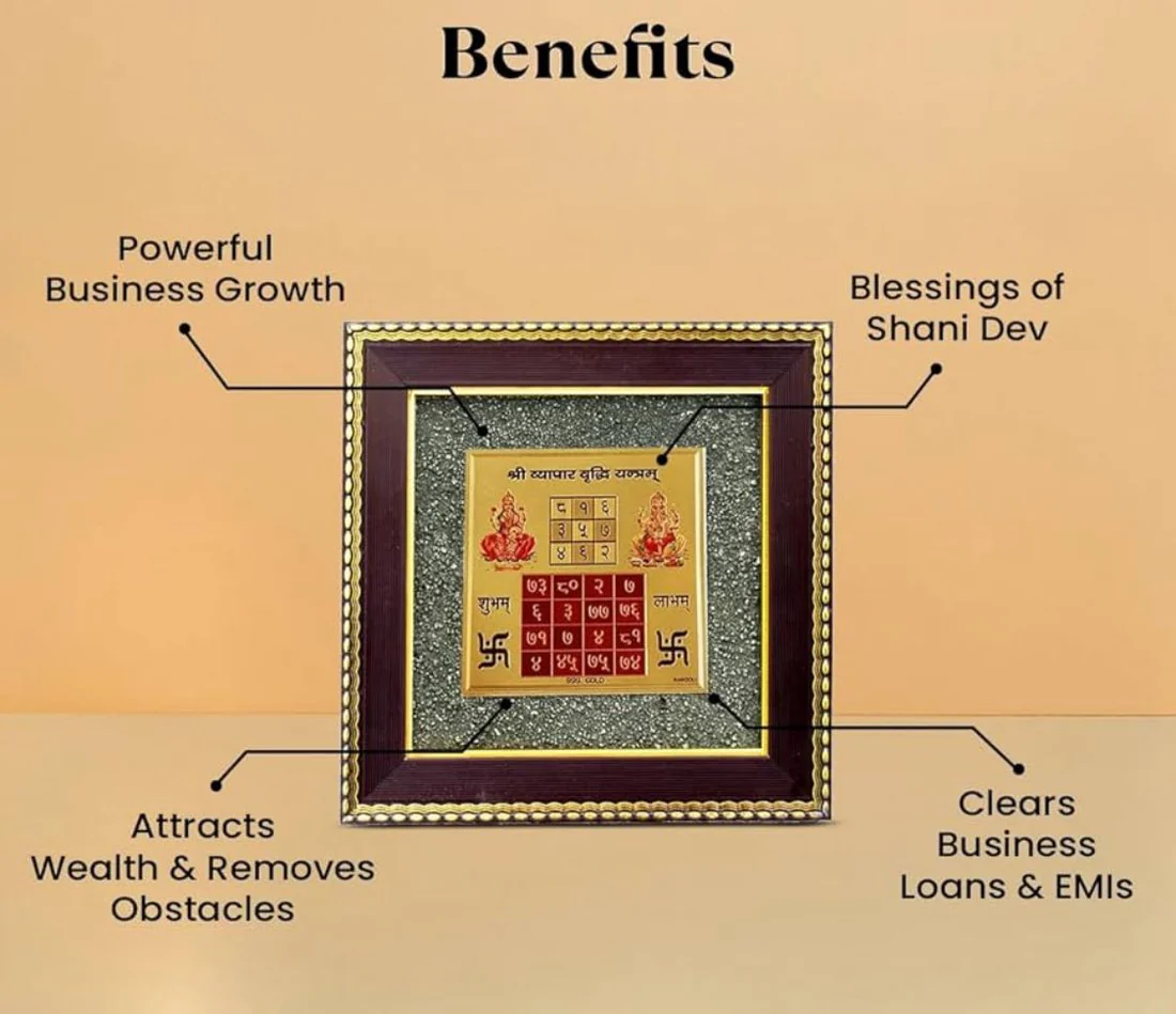 Shri Vyapar Vriddhi Yantra brings growth, success, and prosperity in business. It removes obstacles and attracts wealth when placed in office, shop, or workplace.