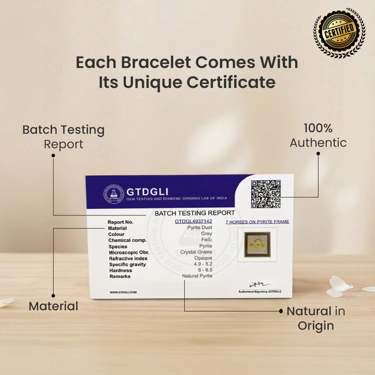 The 7 Horses on Raw Pyrite Frame is designed to attract career growth, success, fame, and prosperity into your life. Inspired by Surya Dev’s 7 horses, this powerful symbol represents speed, strength, victory, and forward momentum, helping remove obstacles and accelerate progress in your professional journey.